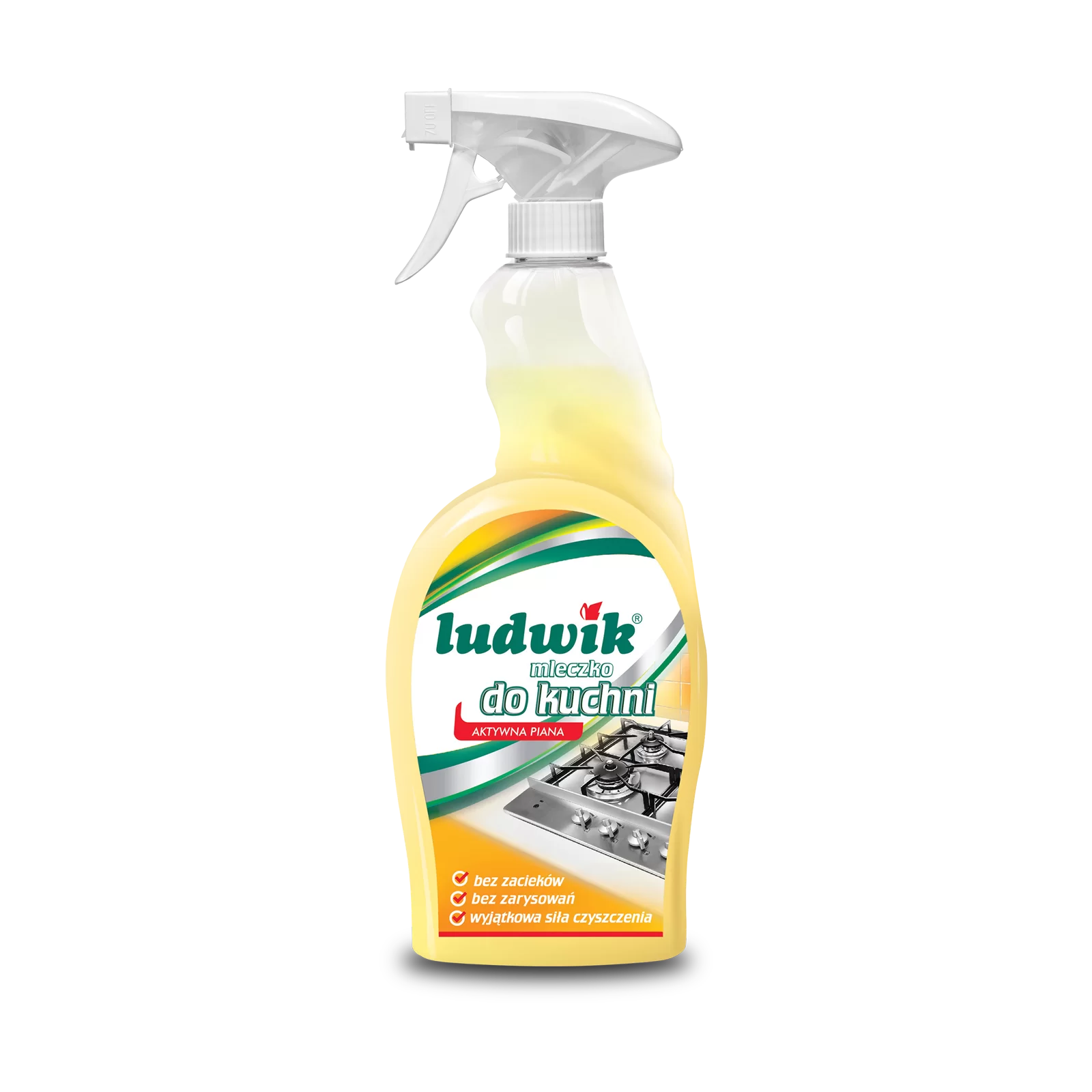Ludwik mleczko do kuchni z aktywną pianą usuwa tłuszcz, przypalone jedzenie oraz lepki brud.